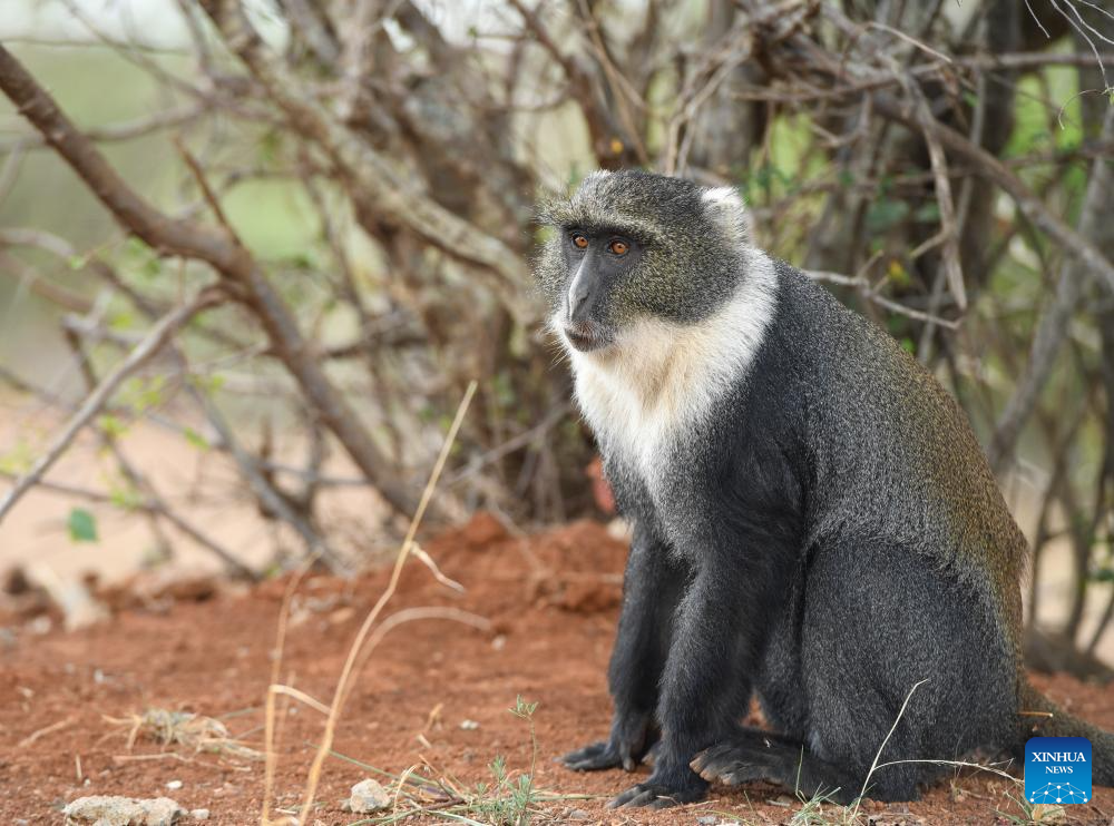 This photo taken on Oct. 15, 2023 shows a blue monkey at Nairobi National Park in Nairobi, Kenya. The Nairobi National Park, situated approximately 7 kilometers from the city center, is a habitat for varied wildlife population. Established in 1946, this park is home to nearly 100 species of mammals and over 500 species of birds (Xinhua/Li Yahui)