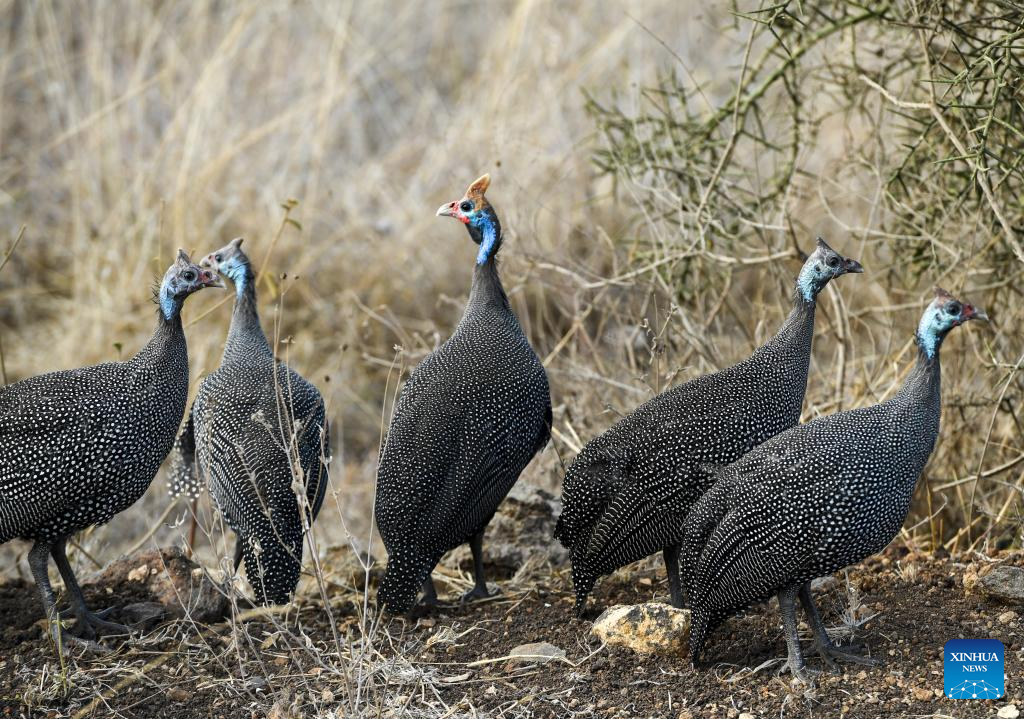 This photo taken on Oct. 15, 2023 shows guinea fowls at Nairobi National Park in Nairobi, Kenya. The Nairobi National Park, situated approximately 7 kilometers from the city center, is a habitat for varied wildlife population. Established in 1946, this park is home to nearly 100 species of mammals and over 500 species of birds (Xinhua/Li Yahui)