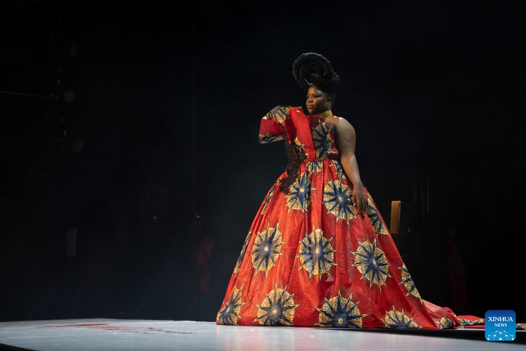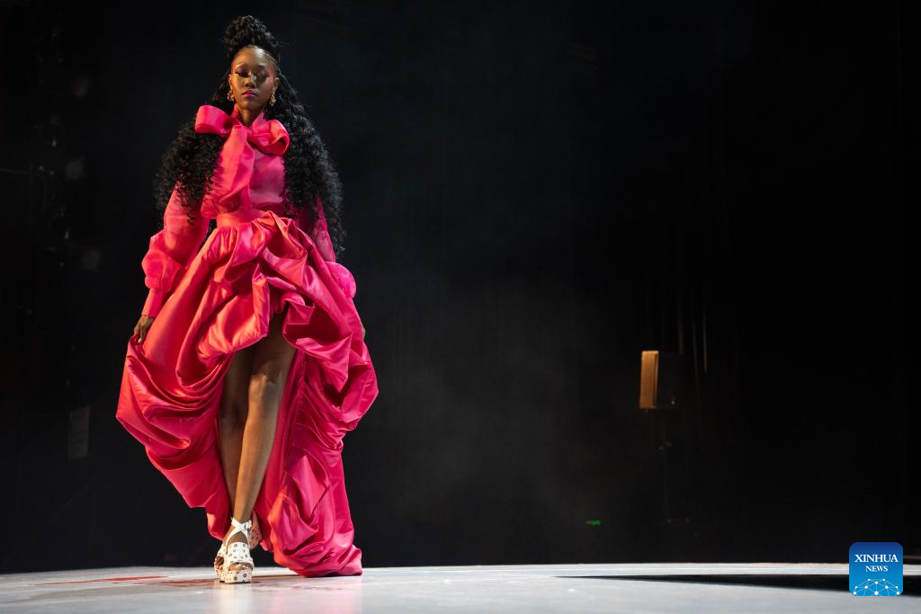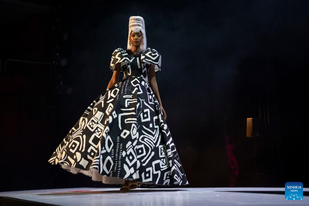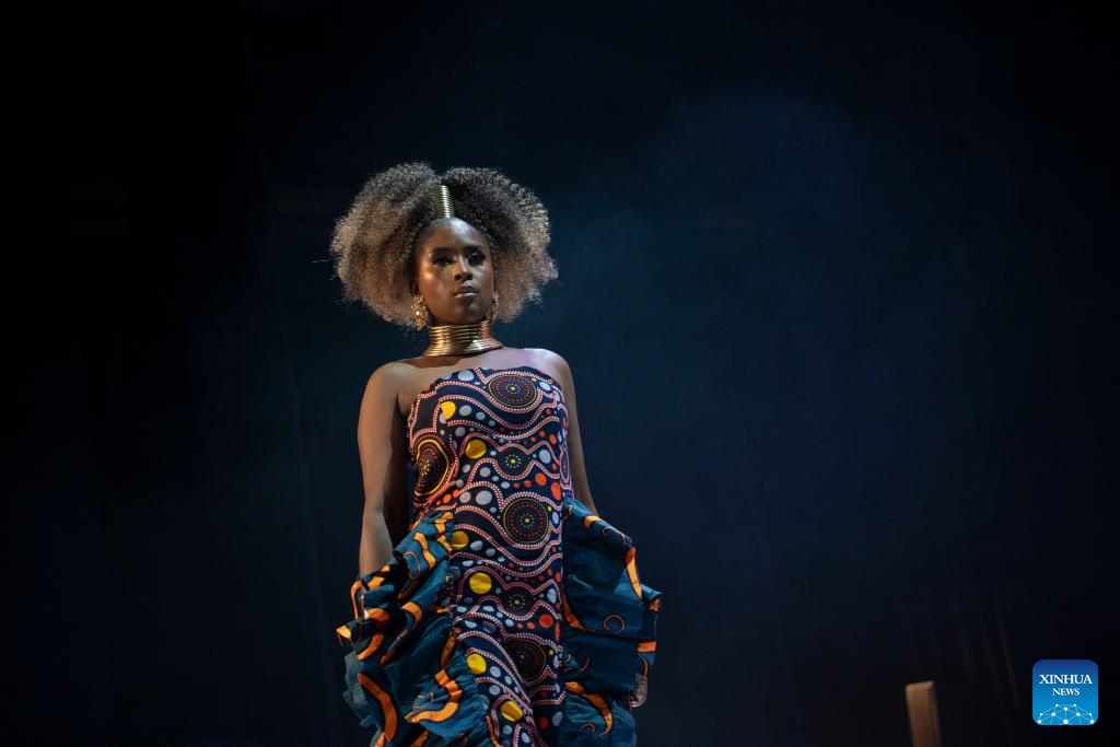 A model presents a creation at Soweto Fashion Week in Soweto, Johannesburg, South Africa, Nov. 2, 2023. (Photo by Ihsaan Haffejee/Xinhua)