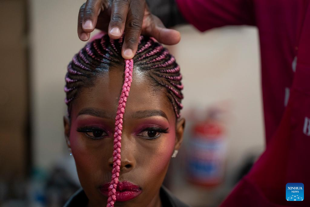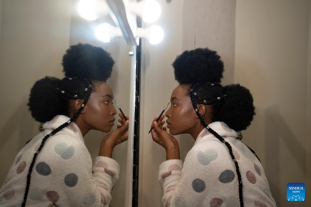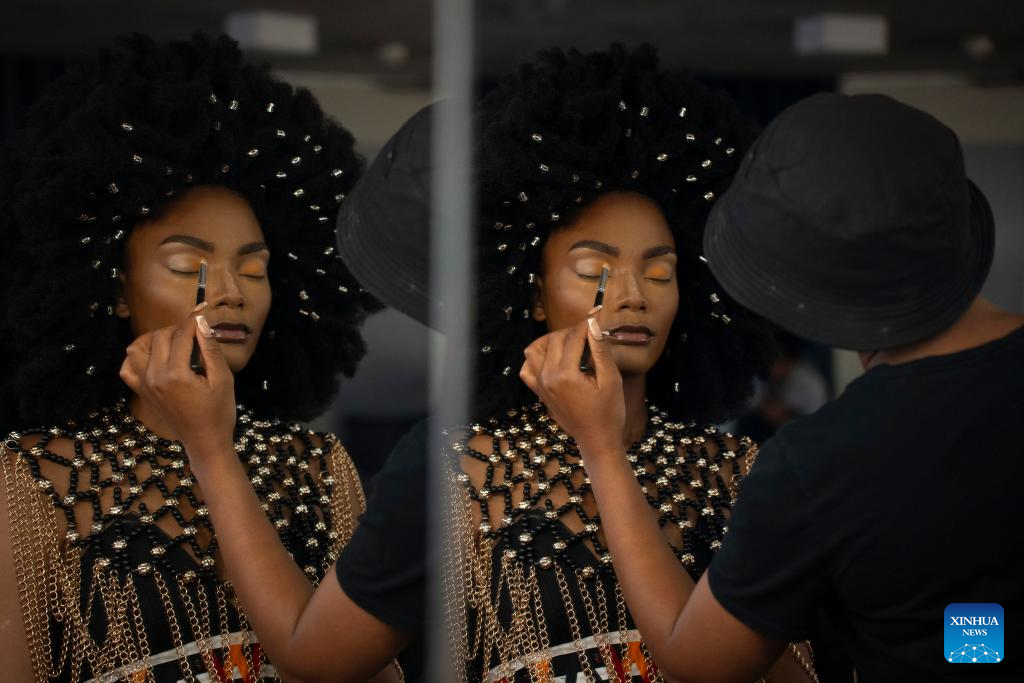 A model is seen preparing backstage at Soweto Fashion Week in Soweto, Johannesburg, South Africa, Nov. 2, 2023. (Photo by Ihsaan Haffejee/Xinhua)