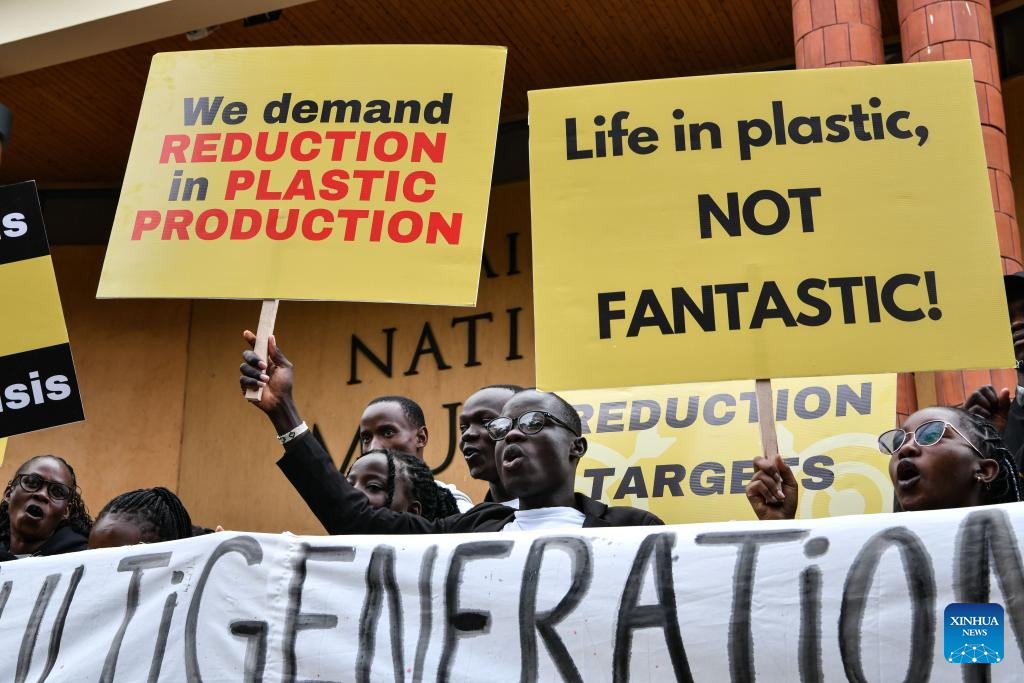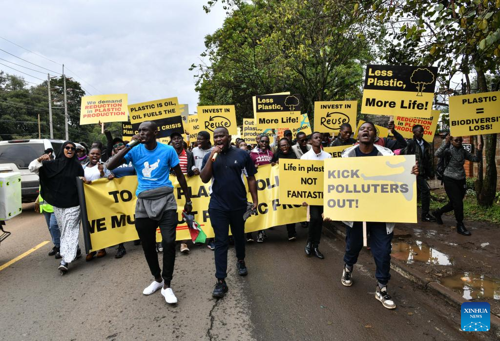 NAIROBI, Nov. 11 (Xinhua) -- Hundreds of green campaigners drawn from the Global South marched through the streets in the Kenyan capital of Nairobi on Saturday, calling for a binding treaty to accelerate the phasing out of plastic production and use.