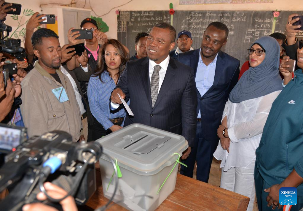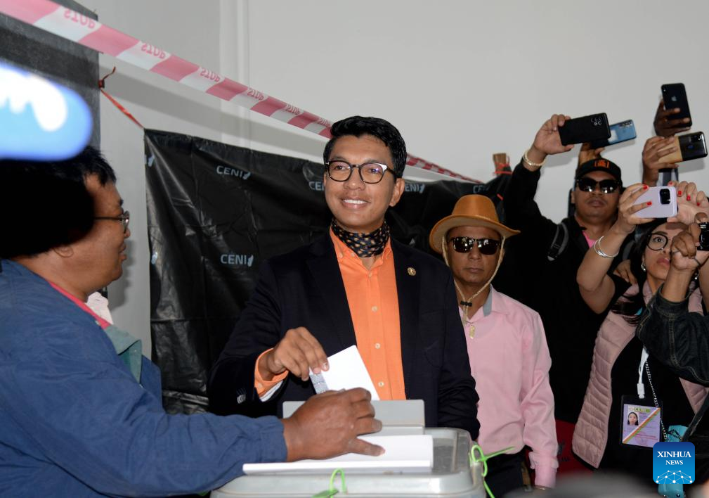 Incumbent President of Madagascar Andry Rajoelina casts his ballot at a polling station in Antananarivo, Madagascar, Nov. 16, 2023. Madagascar kicked off its first round of the presidential election on Thursday to select the national leader for the next five years among 13 candidates, including incumbent President Andry Rajoelina. (Photo by Sitraka Rajaonarison/Xinhua)