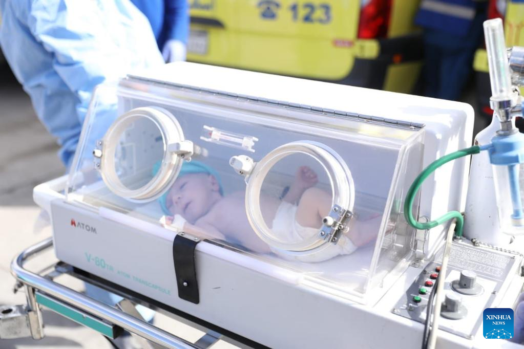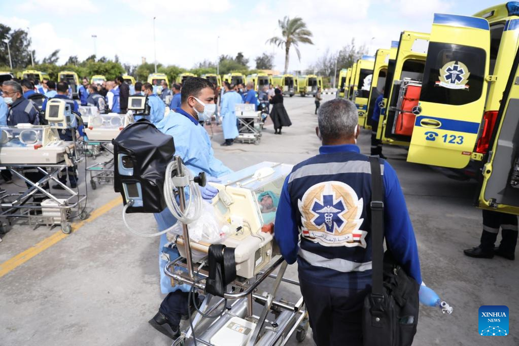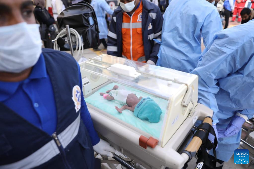 CAIRO, Nov. 20 (Xinhua) -- Egypt received on Monday 28 premature babies from Al-Shifa, Gaza's largest hospital, via Rafah crossing, the only crossing point between the besieged Gaza Strip and Egypt, the Egyptian AlQahera News TV reported.
