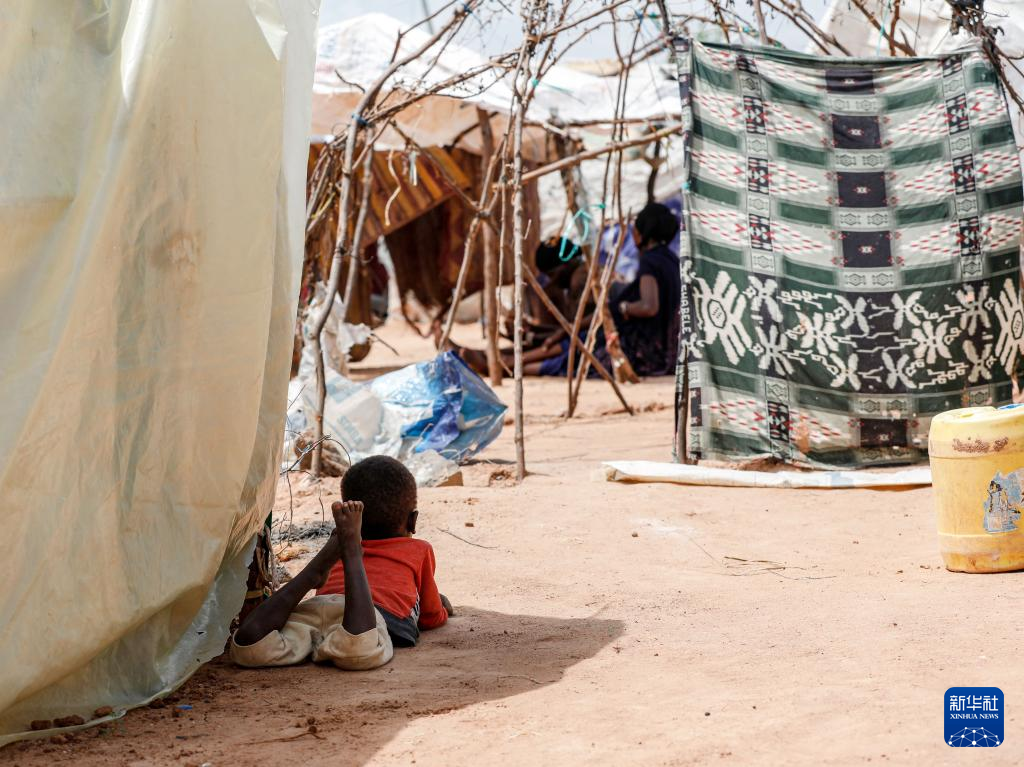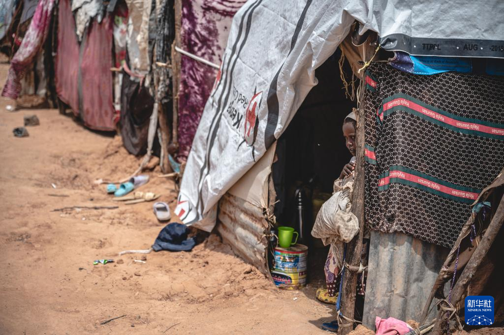 This photo taken on Dec. 1, 2023 shows a child leaning on a tent in a makeshift shelter in Tana River County, Kenya.