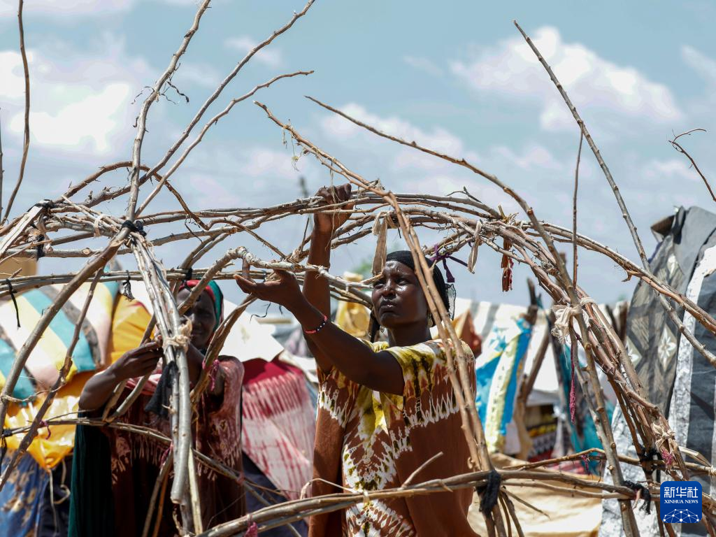Women build a tent at a makeshift shelter in Tana River County, Kenya, Dec. 1, 2023.
