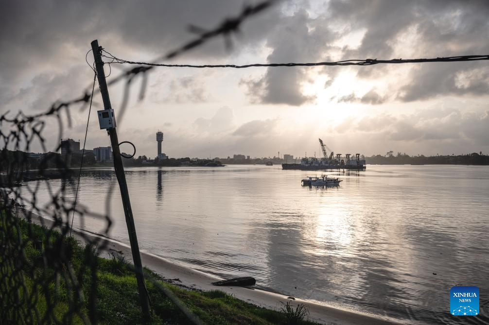 This photo taken on Dec. 29, 2023 shows the Dar es Salaam port at sunrise in Dar es Salaam, Tanzania. (Xinhua/Wang Guansen)