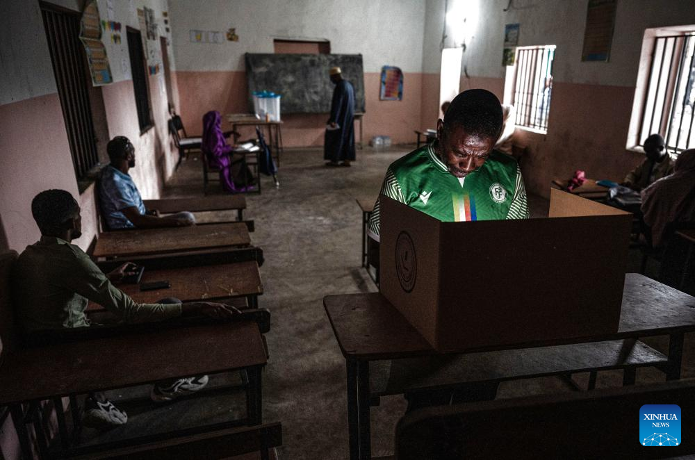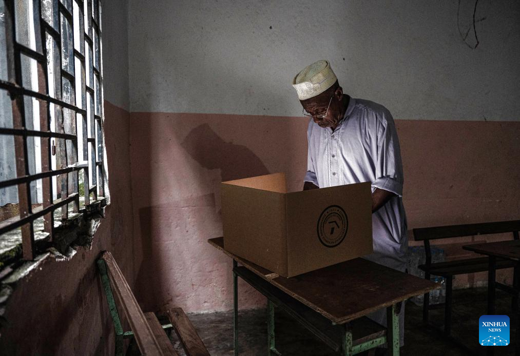 A man votes at a polling station in Mitsudje, Comoros, Jan. 14, 2024. Comoros kicked off its first round of the presidential election on Sunday to select the national leader from among six candidates, including incumbent President Azali Assoumani, for the next five years. (Xinhua/Wang Guansen)
