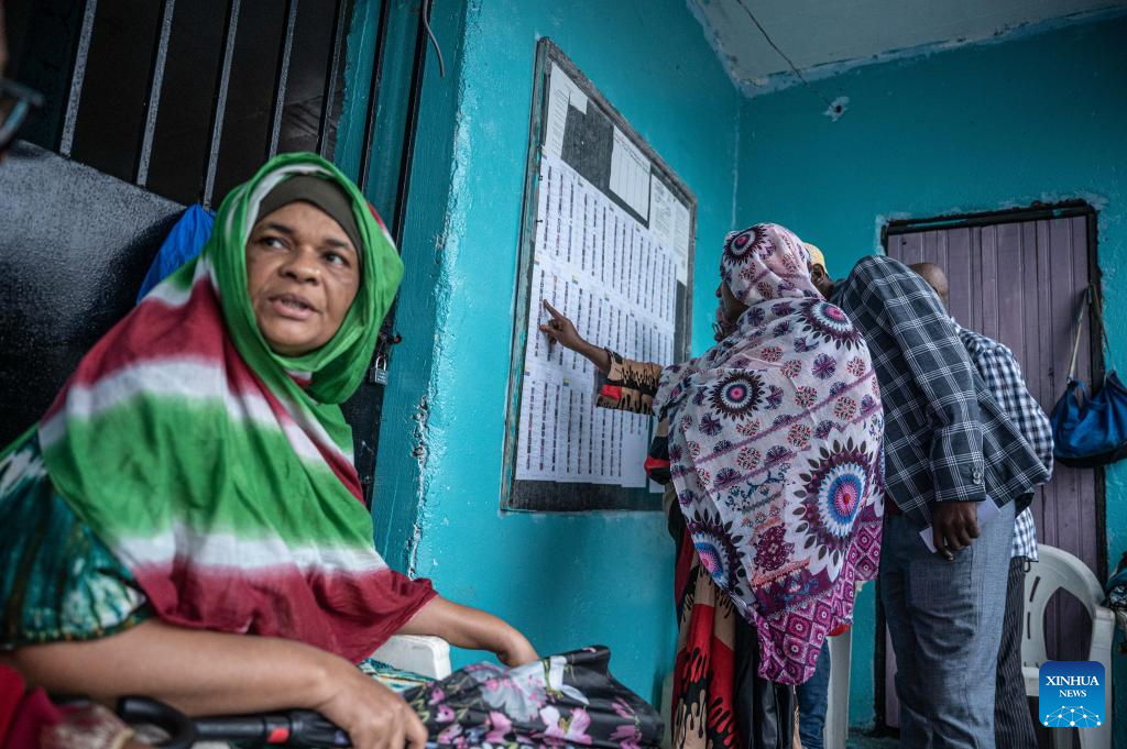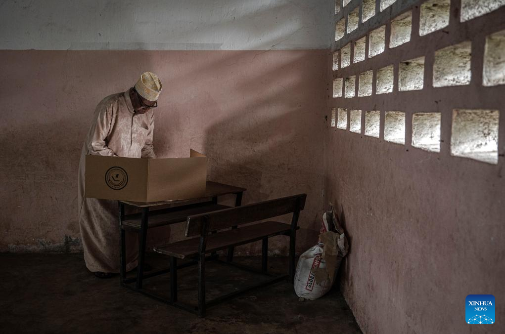 This photo taken on Jan. 14, 2024 shows a polling station in Mitsudje, Comoros. Comoros kicked off its first round of the presidential election on Sunday to select the national leader from among six candidates, including incumbent President Azali Assoumani, for the next five years. (Xinhua/Wang Guansen)
