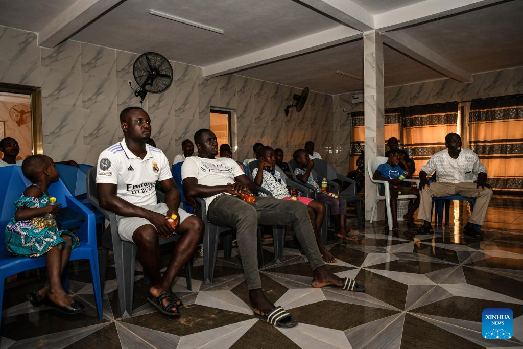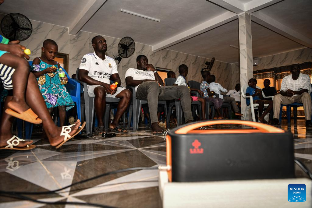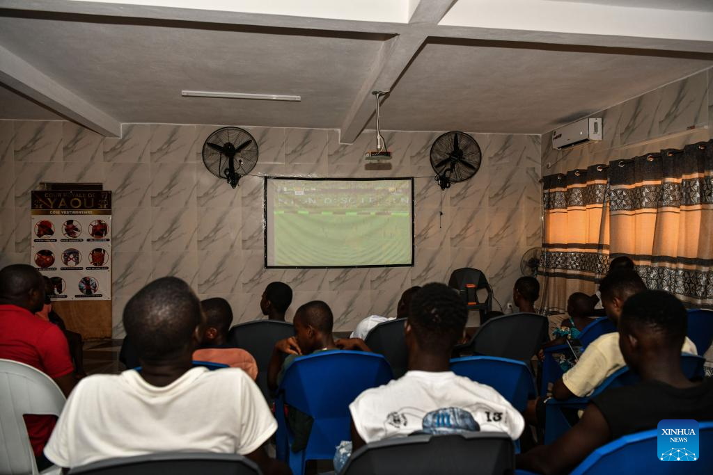 People watch the 2023 Africa Cup of Nations (AFCON) matches with the help of China's satellite TV project in Yaou village, Cote d'Ivoire, Jan. 14, 2024. Thousands of people living in remote areas in Cote d'Ivoire and other African countries were able to watch the matches at home when the 2023 Africa Cup of Nations (AFCON) kicked off on Saturday, thanks to broadcast services provided by StarTimes, a Chinese digital TV operator.