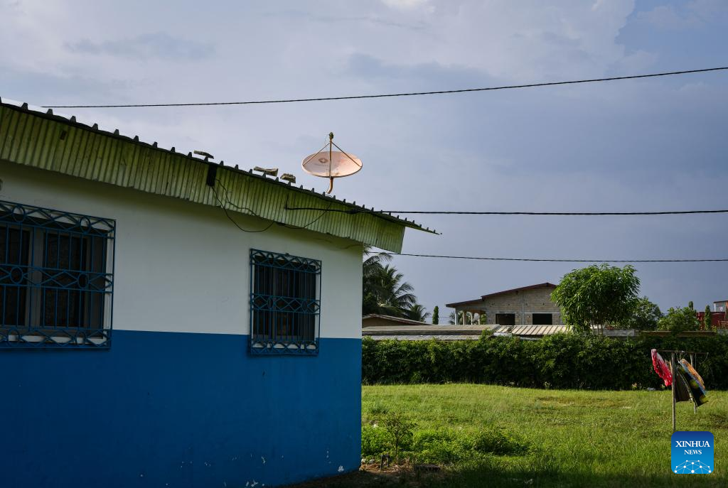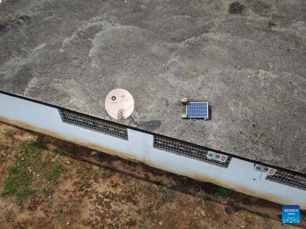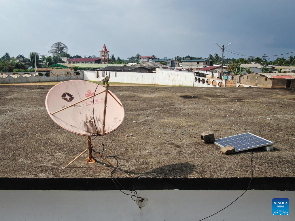 An aerial drone photo taken on Jan. 14, 2024 shows a satellite TV receiver in Yaou village, Cote d'Ivoire. Thousands of people living in remote areas in Cote d'Ivoire and other African countries were able to watch the matches at home when the 2023 Africa Cup of Nations (AFCON) kicked off on Saturday, thanks to broadcast services provided by StarTimes, a Chinese digital TV operator.