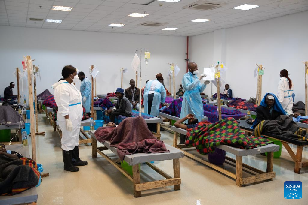 Medical workers take care of patients at the National Heroes Stadium, which has been designated as a cholera treatment center, in Lusaka, Zambia, Jan. 18, 2024.