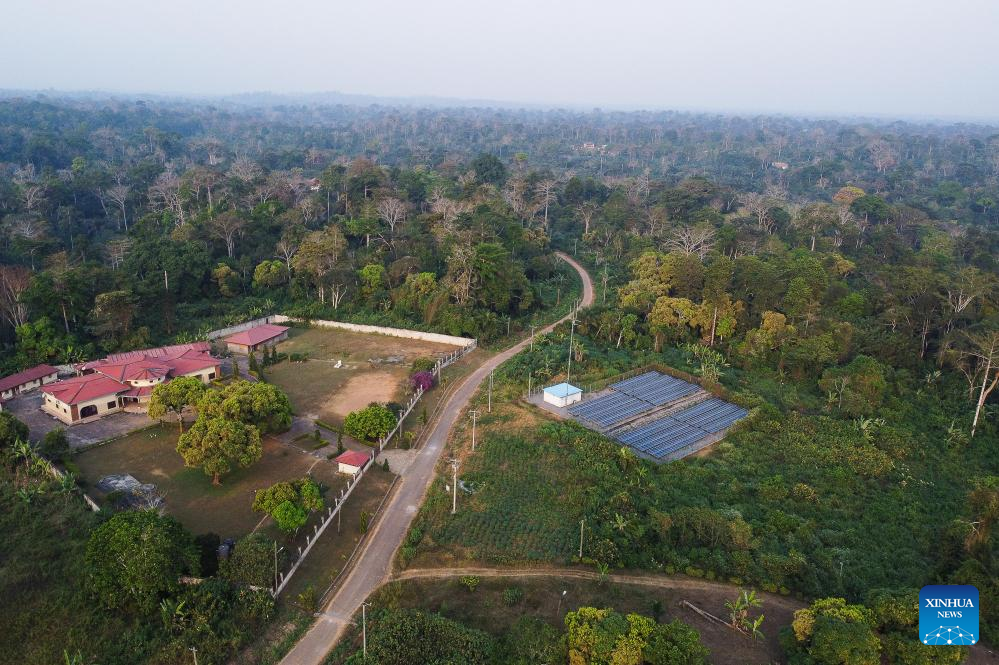 An aerial drone photo taken on Jan. 15, 2024 shows a view of the solar energy plant built by Chinese telecoms firm Huawei in Konabeng, Cameroon. (Xinhua/Kepseu)
