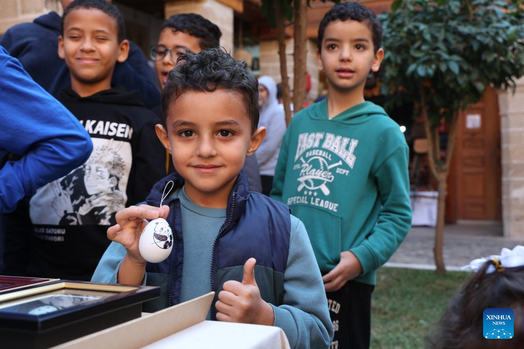 A child displays a handicraft made from eggshell during a cultural event marking the coming Chinese Spring Festival in Rabat, Morocco, on Jan. 27, 2024. The cultural event kicked off here on Jan. 22 and concluded on Jan. 27 to celebrate the upcoming Chinese Lunar New Year of the Dragon. (Xinhua/Huo Jing)