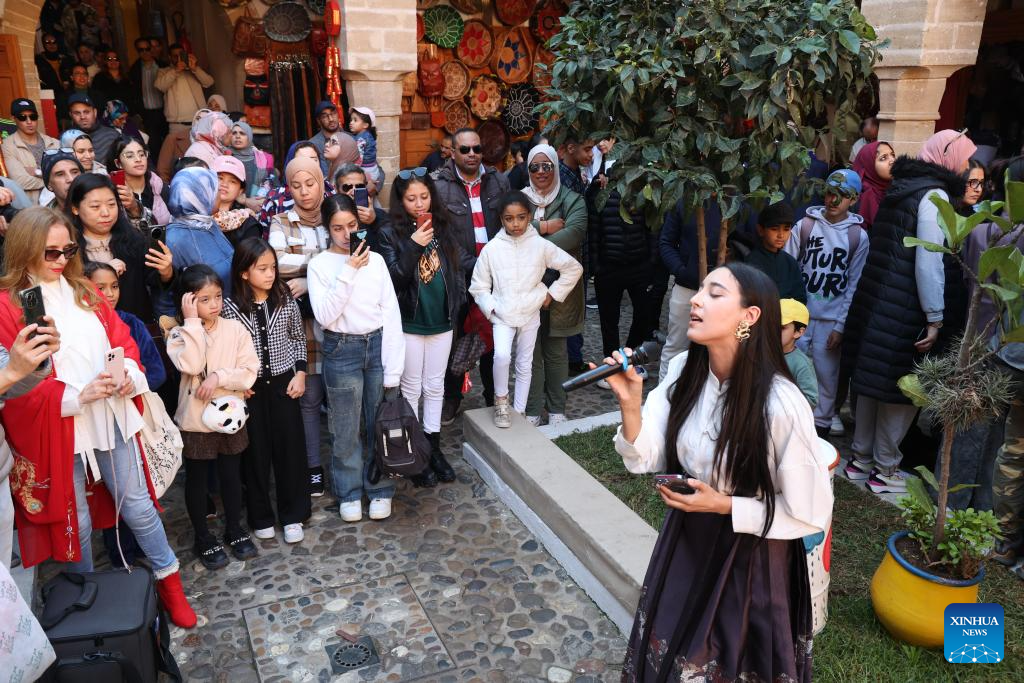 A Moroccan singer sings a Chinese song during a cultural event marking the coming Chinese Spring Festival in Rabat, Morocco, on Jan. 27, 2024. The cultural event kicked off here on Jan. 22 and concluded on Jan. 27 to celebrate the upcoming Chinese Lunar New Year of the Dragon. (Xinhua/Huo Jing)