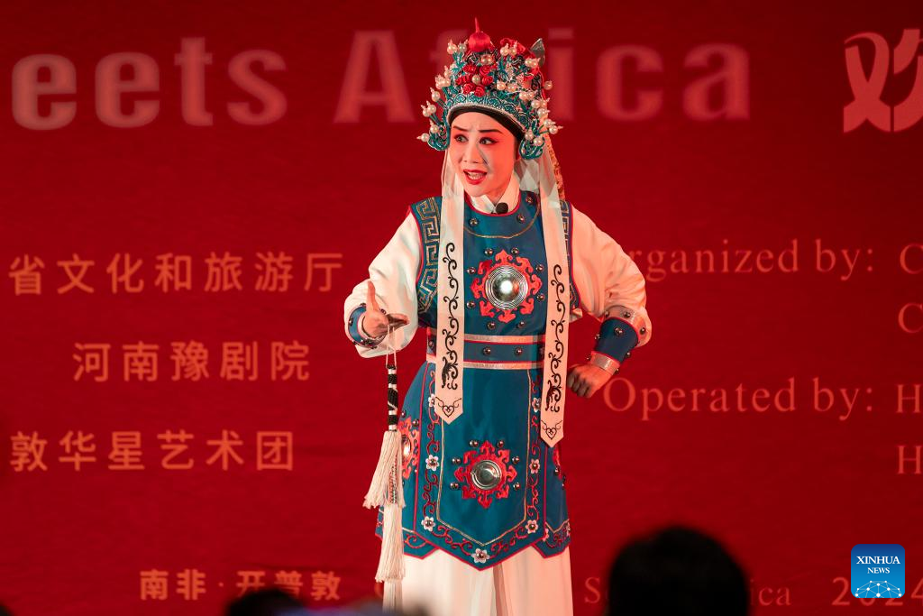 A Chinese artist performs Yu Opera in Cape Town, South Africa, Jan. 27, 2024. A captivating gala performance presented by a Chinese arts troupe wowed the audience on Saturday evening in Cape Town, the legislative capital of South Africa. (Photo by Fred Barker/Xinhua)