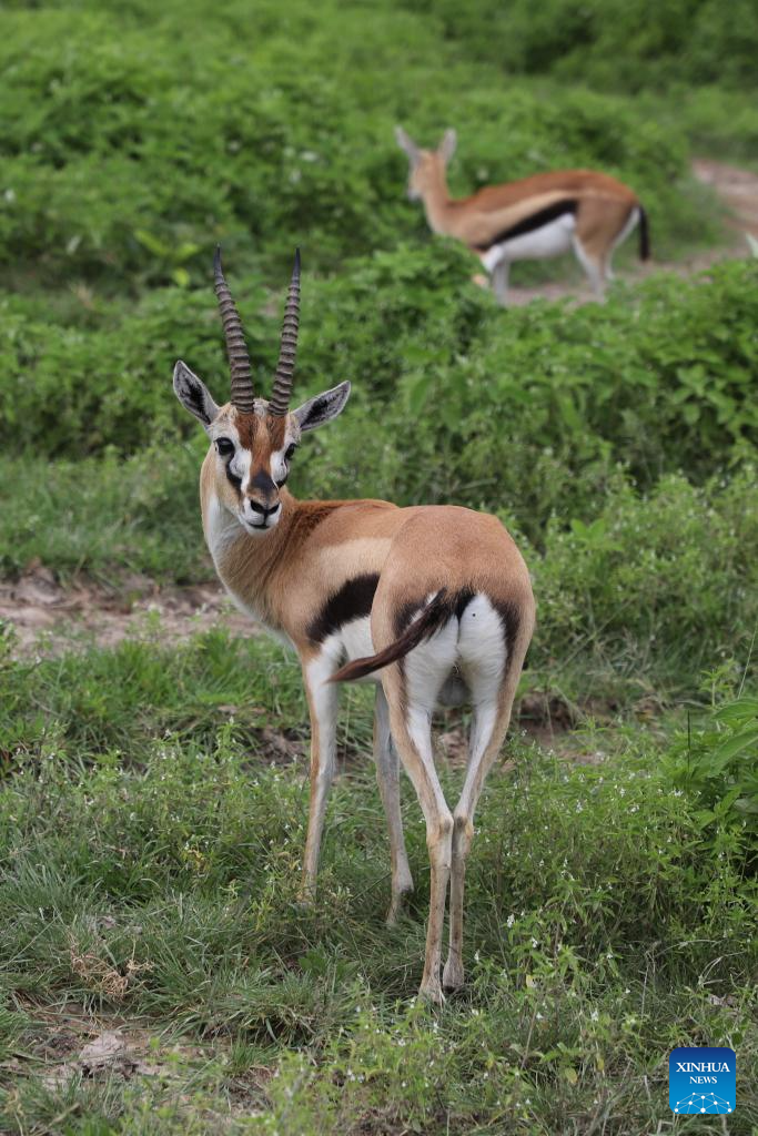 This photo taken on Jan. 29, 2024 shows two antelopes in Ngorongoro Conservation Area, Arusha, Tanzania. (Xinhua/Hua Hongli)