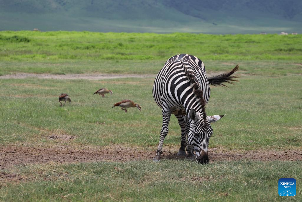 This photo taken on Jan. 29, 2024 shows a zebra in Ngorongoro Conservation Area, Arusha, Tanzania. (Xinhua/Hua Hongli)
