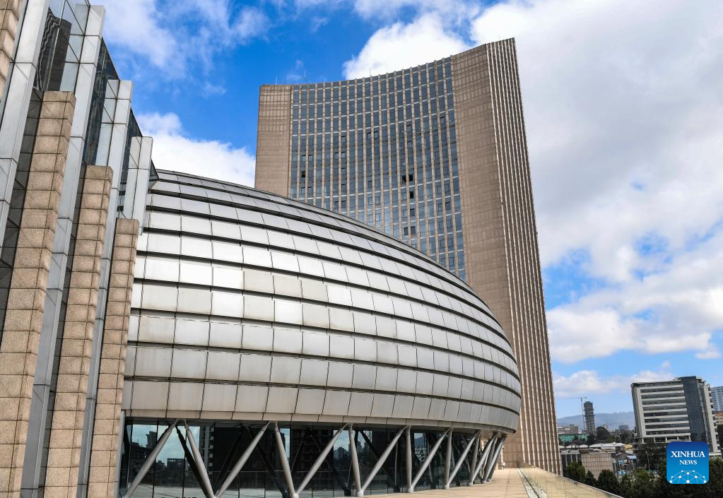 This photo taken on Feb. 17, 2024 shows an exterior view of the African Union (AU) headquarters in Addis Ababa, Ethiopia. The 37th Ordinary Session of the AU Assembly of the Heads of State and Government opened on Saturday at the AU headquarters in Addis Ababa, the capital of Ethiopia. (Xinhua/Li Yahui)