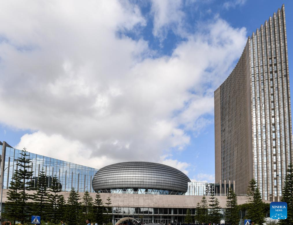This photo taken on Feb. 17, 2024 shows an exterior view of the African Union headquarters in Addis Ababa, Ethiopia. The 37th Ordinary Session of the AU Assembly of the Heads of State and Government opened here on Saturday. (Xinhua/Li Yahui)