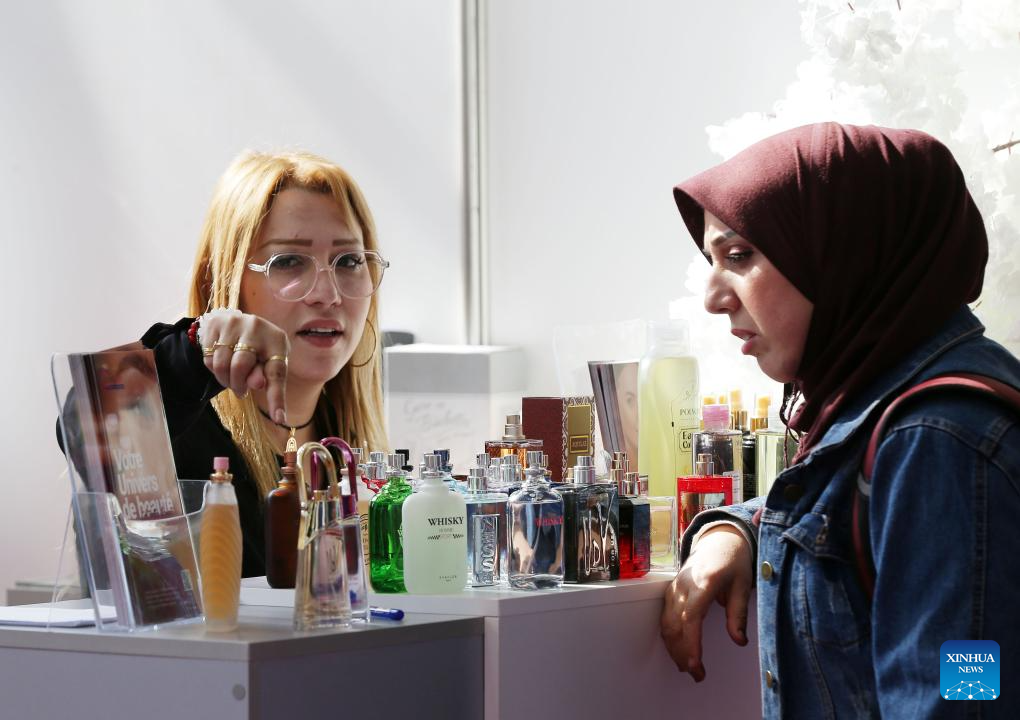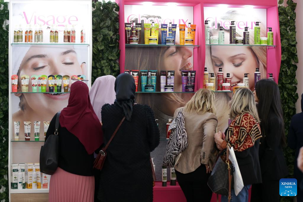 People visit Cosmetica Algeria, an international beauty trade show in Algiers, Algeria on Feb. 21, 2024. Dedicated to sectors of beauty industry, the trade show kicked off on Wednesday and will last till Feb. 24. (Xinhua)