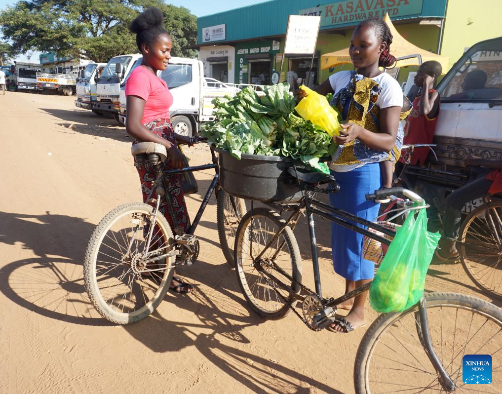 Women use bicycles as a means of transportation in Mpongwe, Copperbelt Province, Zambia, on Feb. 16, 2024. Over the years, bicycles have emerged as a catalyst for change, offering newfound independence, opportunities, and freedom to many women and girls in rural Zambia. (Photo by Lillian Banda/Xinhua)