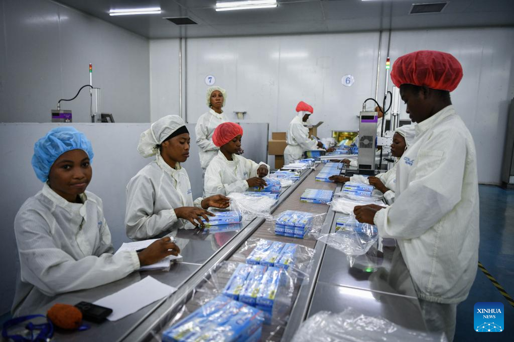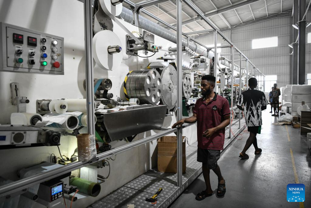 Employees operate at a workshop of a personal care product company in the Lekki Free Trade Zone in Lagos, Nigeria, March 1, 2024. Jointly founded by Chinese companies and the Lagos state government, the Lekki Free Trade Zone started construction in 2006. After 18 years of development, the zone has been gaining momentum in the socio-economic drive of Nigeria, significantly accelerating the process of industrialization and job creation. (Xinhua/Han Xu)