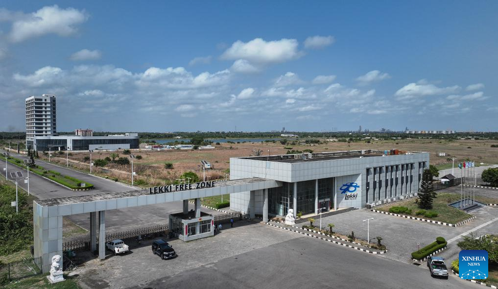 Aerial drone photo taken on March 1, 2024 shows the entrance to the Lekki Free Trade Zone in Lagos, Nigeria. Jointly founded by Chinese companies and the Lagos state government, the Lekki Free Trade Zone started construction in 2006. After 18 years of development, the zone has been gaining momentum in the socio-economic drive of Nigeria, significantly accelerating the process of industrialization and job creation. (Xinhua/Han Xu)