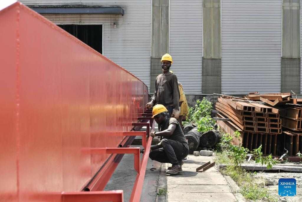 Employees work at a steel mill in the Lekki Free Trade Zone in Lagos, Nigeria, March 1, 2024. Jointly founded by Chinese companies and the Lagos state government, the Lekki Free Trade Zone started construction in 2006. After 18 years of development, the zone has been gaining momentum in the socio-economic drive of Nigeria, significantly accelerating the process of industrialization and job creation. (Xinhua/Han Xu)