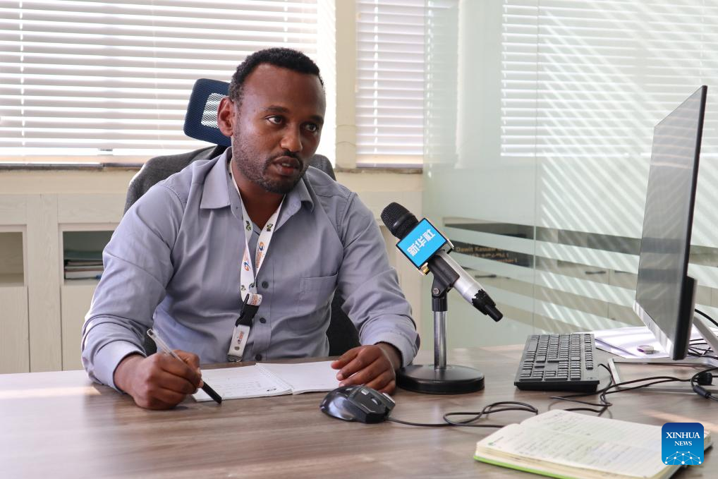 Melaku Muka, director of satellite operations at the Ethiopian Space Science and Geospatial Institute, speaks in an interview with Xinhua on March 1, 2024, in Addis Ababa, the capital of Ethiopia. (Xinhua/Liu Fangqiang)