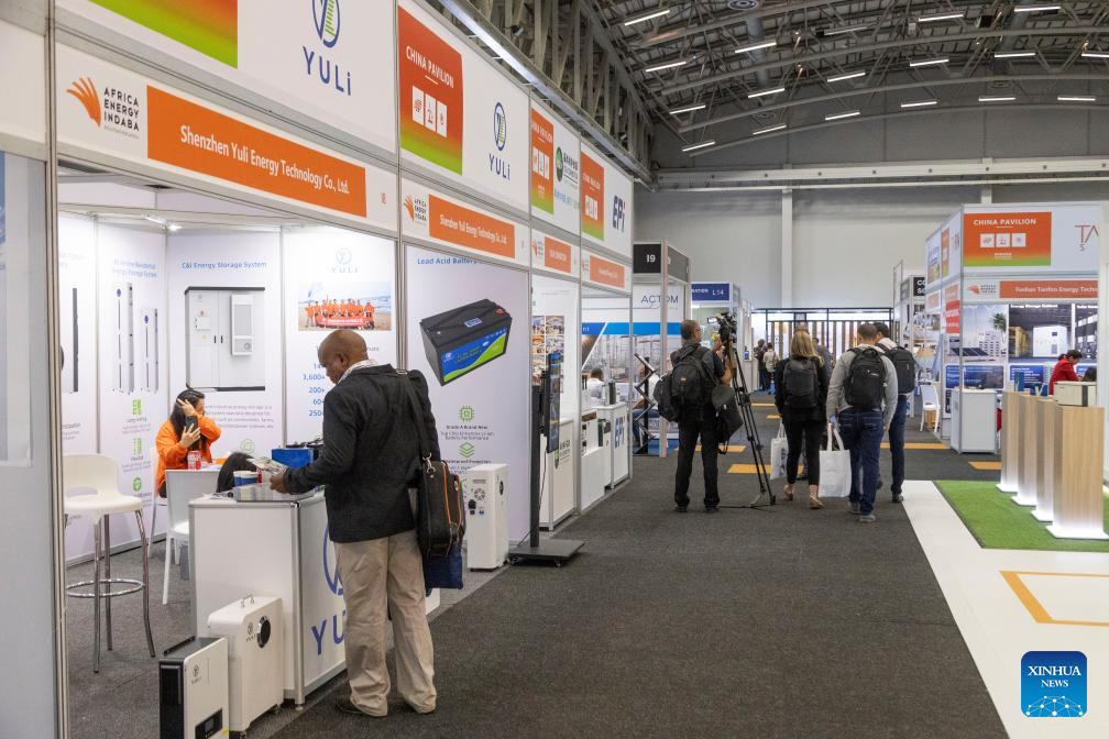 A participant visits a Chinese pavilion at an exhibition of the Africa Energy Indaba 2024 in Cape Town, South Africa, on March 5, 2024. The ongoing Africa Energy Indaba 2024 in Cape Town shed light on the prospects for energy cooperation between South Africa and China, with South African Mineral Resources and Energy Minister Gwede Mantashe emphasizing the positive relationship between the two countries. (Xinhua/Wang Lei)