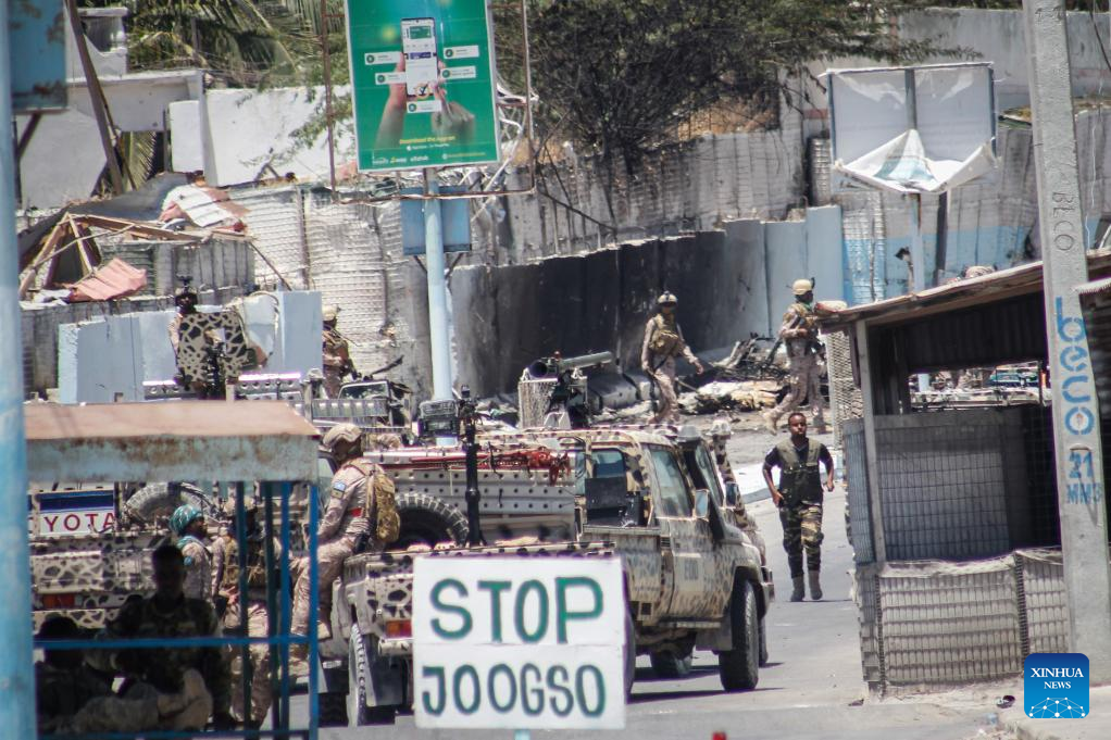 MOGADISHU, March 15 (Xinhua) -- At least three soldiers were killed and 27 others wounded in a terrorist attack at a popular hotel in the Somali capital of Mogadishu Thursday evening, the police confirmed Friday.