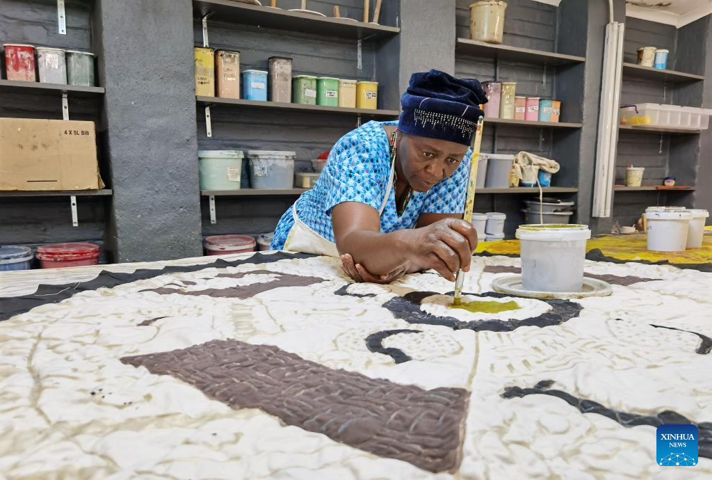 WINDHOEK, April 4 (Xinhua) -- In the Goreangab township northwest of Namibia's capital, Windhoek, Victoria Ndilimeke applied wax and dye to the fabric at a workshop, creating colorful patterns. This batik work is part of a sought-after art collection produced by over 20 women at Penduka Trust, which is a women-empowering initiative to utilize art as a catalyst to help locals secure a better life.