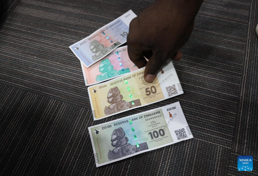 The new structured currency, known as the Zimbabwe Gold (ZiG), will be backed by a basket of foreign exchange reserves and precious metals, mainly gold, being held by the Reserve Bank of Zimbabwe (RBZ), or the country's central bank. (Photo by Shaun Jusa/Xinhua)