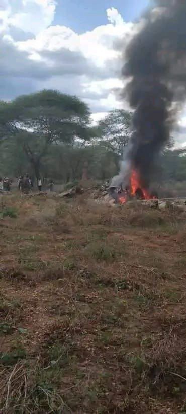 Witnesses said that the KDF helicopter crashed two kilometers away and burst into flames moments after taking off from an area along the troubled Elgeyo Marakwet-West Pokot border. "We saw the chopper come down, and when we rushed to the scene, we found the chopper in flames," said Evans Kipkosgei, a resident, adding that the site was immediately cordoned off by KDF officers stationed in the Kerio Valley.