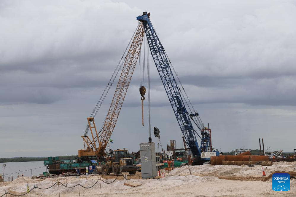 This photo taken on April 16, 2024 shows the construction site of Tanzania's first-ever fishing harbor in Kilwa Masoko in Lindi, Tanzania. The construction of the harbor in Kilwa Masoko on the Indian Ocean coastline in the Lindi region has reached 42 percent.