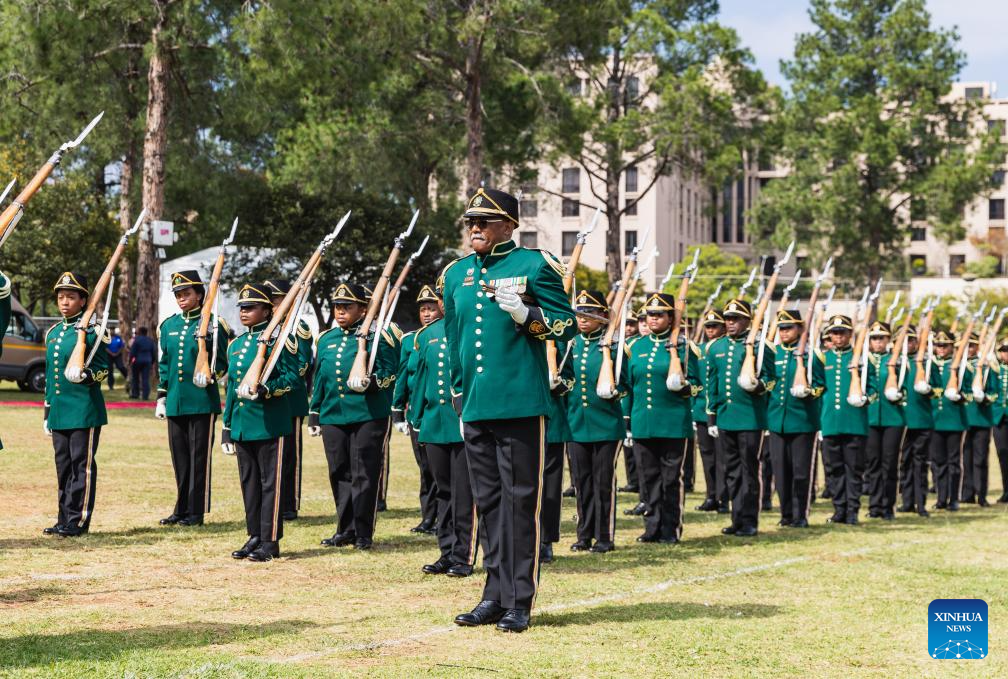 Guards of honor attend a celebration to commemorate Freedom Day at the Union Buildings in Pretoria, South Africa, on April 27, 2024. Freedom Day, which is celebrated on April 27 each year, is designed to commemorate the first democratic elections held in South Africa on April 27, 1994, when anyone could vote regardless of race. (Xinhua/Zhang Yudong)