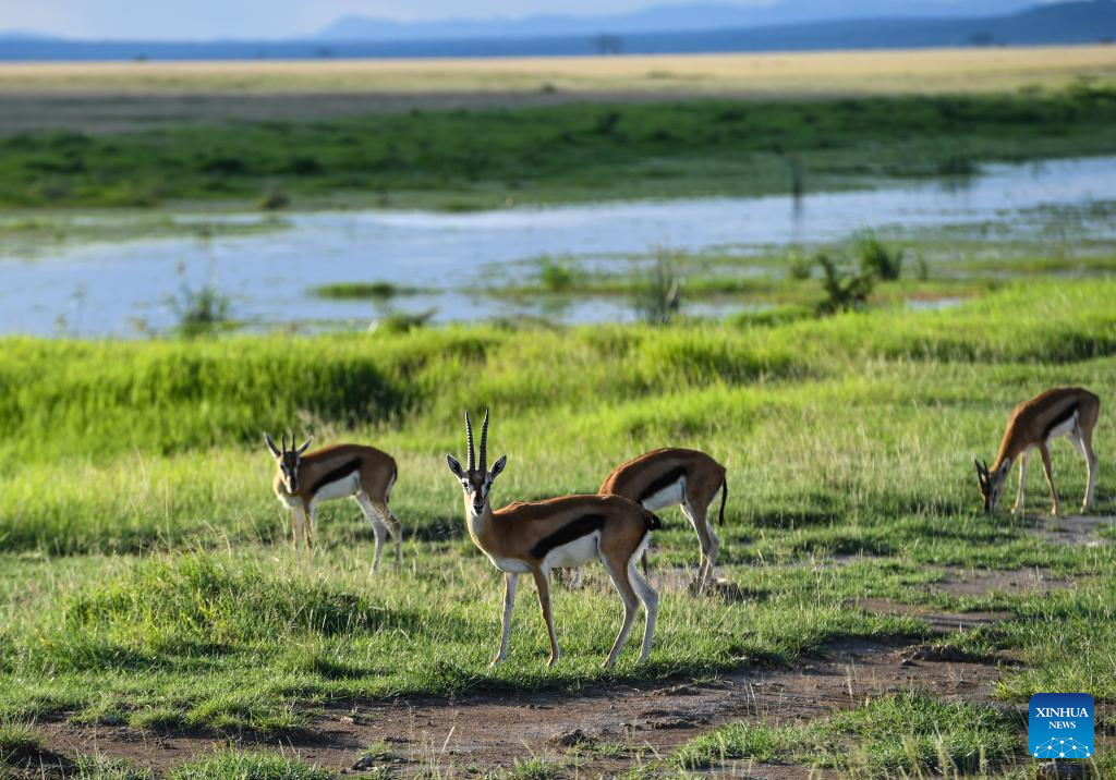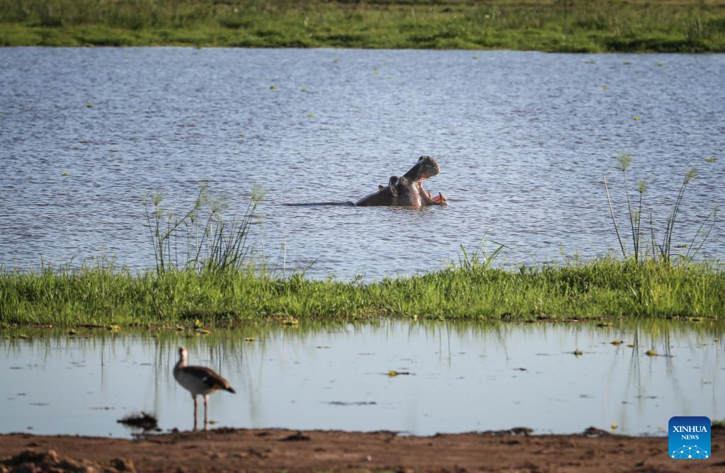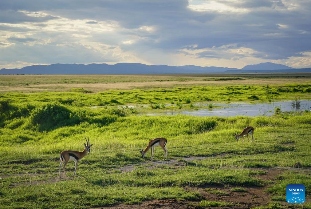 Covering an area of over 390 square kilometers, the park boasts beautiful grassland scenery and is home to a diverse array of wildlife including elephants, lions, antelopes, zebras, giraffes, buffaloes, and various bird species. It attracts waves of tourists from all around the world. (Xinhua/Han Xu)