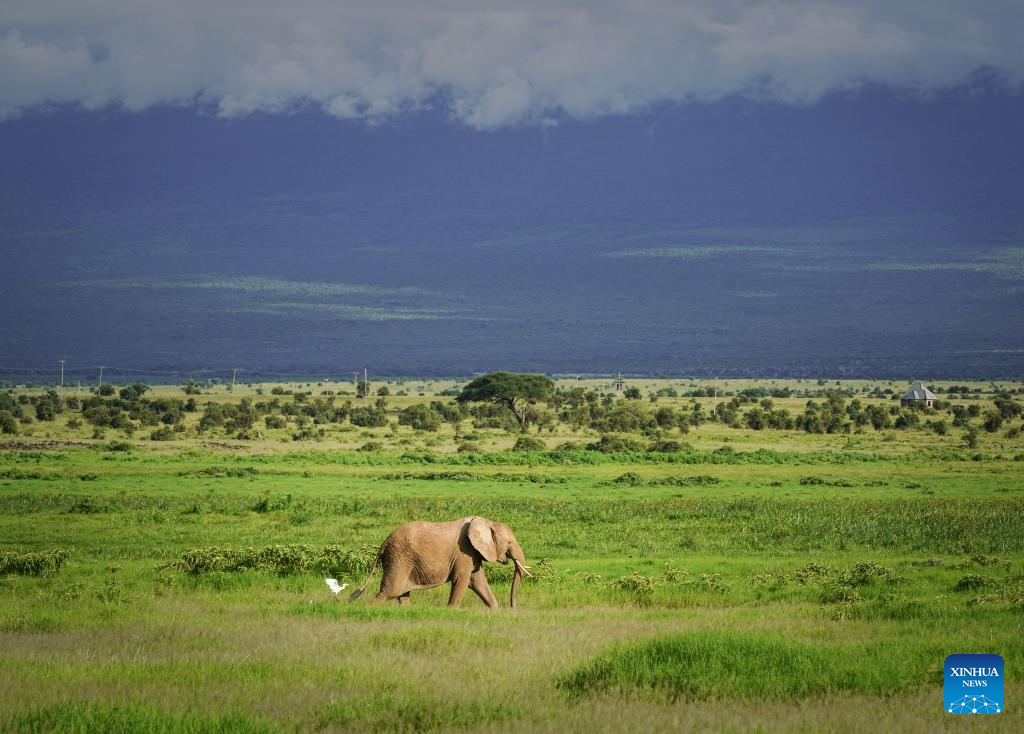 The park boasts beautiful grassland scenery and is home to a diverse array of wildlife including elephants, lions, antelopes, zebras, giraffes, buffaloes, and various bird species. It attracts waves of tourists from all around the world. (Xinhua/Li Yahui)