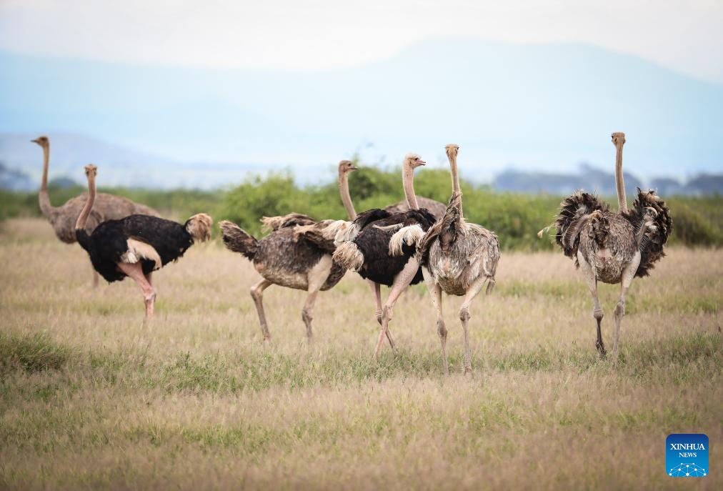 Ostriches are seen at Amboseli National Park in Kajiado County, Kenya, on April 28, 2024.