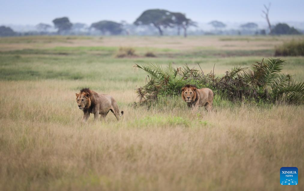 The park boasts beautiful grassland scenery and is home to a diverse array of wildlife including elephants, lions, antelopes, zebras, giraffes, buffaloes, and various bird species. It attracts waves of tourists from all around the world. (Xinhua/Han Xu)