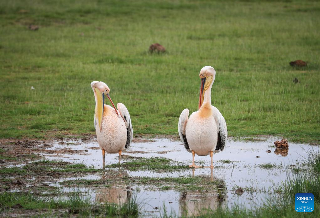 Pelicans are seen at Amboseli National Park in Kajiado County, Kenya, on April 27, 2024.