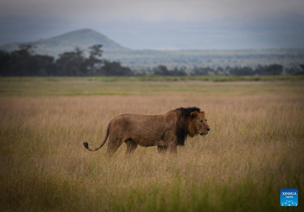 A lion is seen at Amboseli National Park in Kajiado County, Kenya, on April 28, 2024.