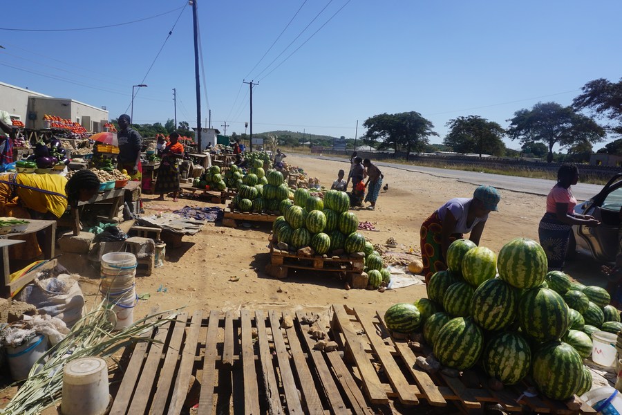 This photo taken on May 9, 2023, shows the Chiliya market, a roadside market in Chongwe district, east of Lusaka, Zambia. (Photo by Lillian Banda/Xinhua)
