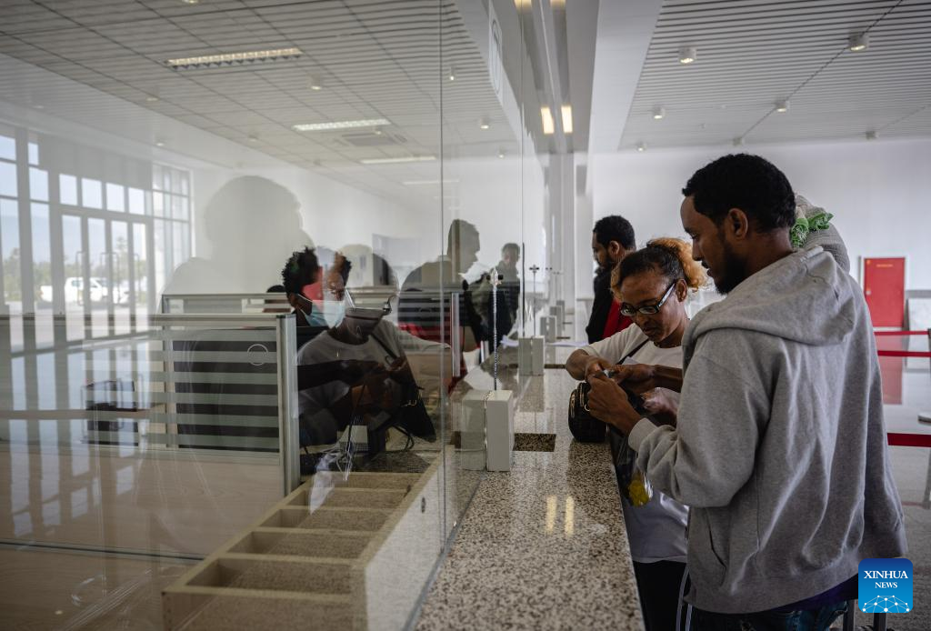Passengers buy tickets at the Lebu Railway Station in Addis Ababa, Ethiopia, Sept. 9, 2023. The Chinese management contractors of Ethiopia-Djibouti standard gauge railway on Friday officially handed over the railway's management and operation to Ethiopia and Djibouti after six years of successful operation. (Xinhua/Wang Guansen)