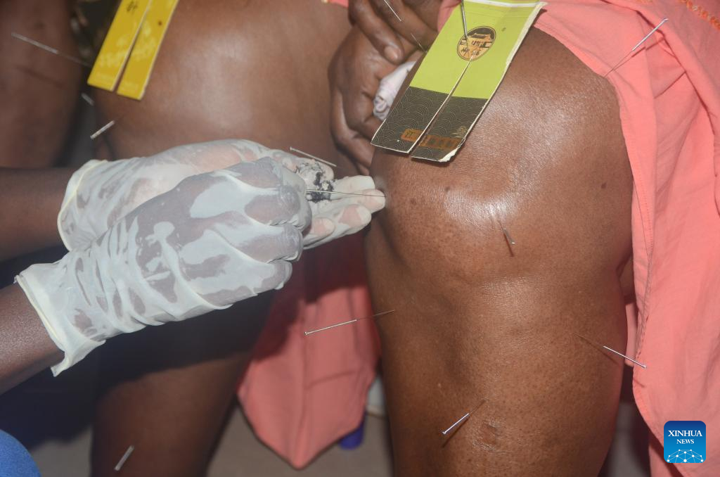 A patient receives acupuncture treatment at the China-Uganda Friendship Hospital in Kampala, Uganda, May 7, 2024. (Photo by Nicholas Kajoba/Xinhua)