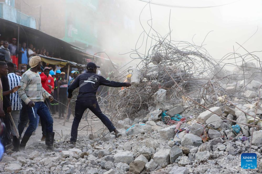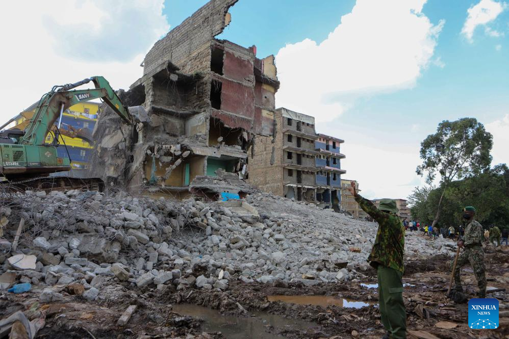 NAIROBI, May 14 (Xinhua) -- Four people were rescued from the rubble of a collapsed residential building on Tuesday in the Kiamaiko area in the Kenyan capital of Nairobi, a police officer said.