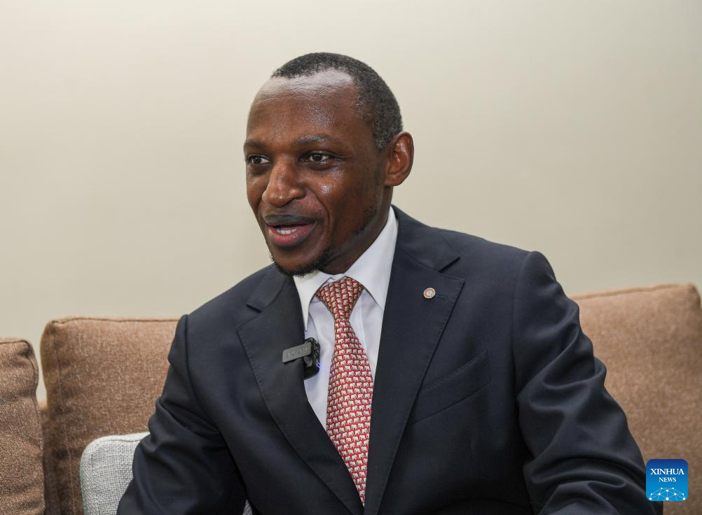Julius Thairu, chief commercial and customer officer of Kenya Airways, receives an interview with Xinhua in Nairobi, Kenya on May 9, 2024. (Xinhua/Li Yahui)