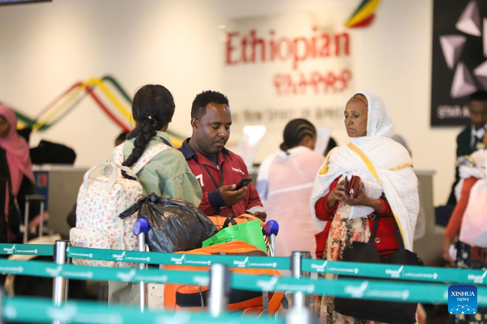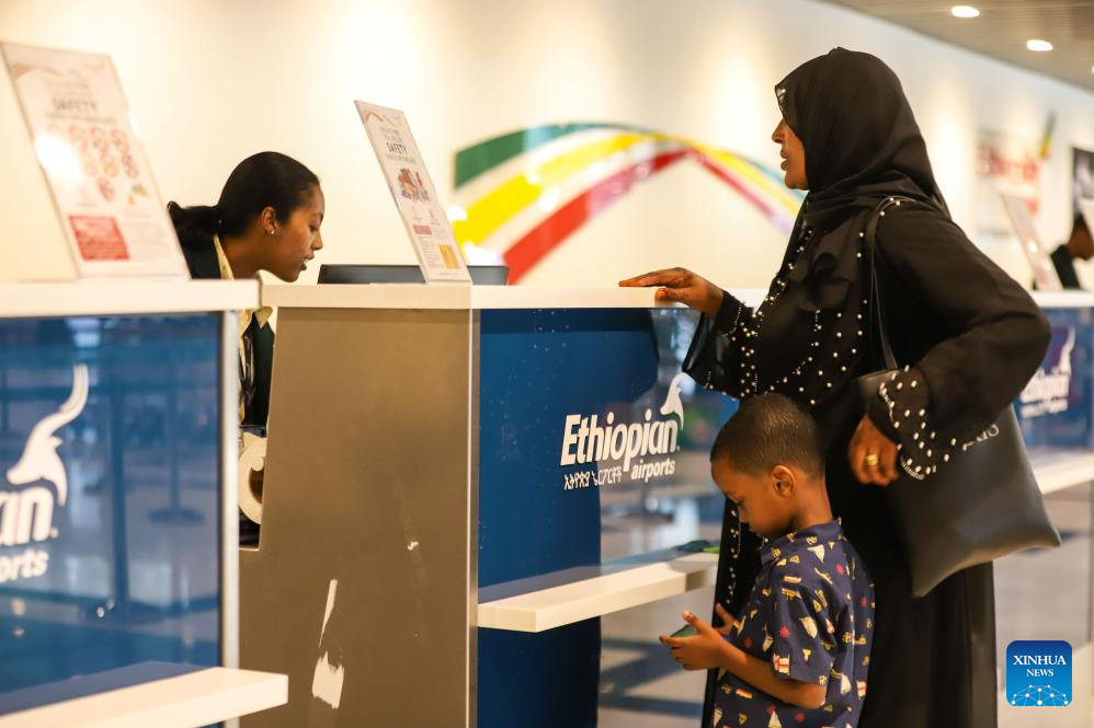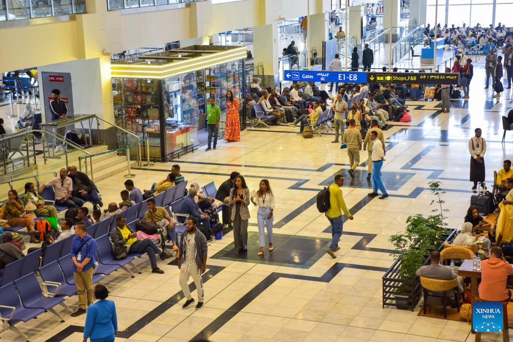 Tourists are pictured at the newly-built domestic passenger terminal at Bole International Airport in Addis Ababa, Ethiopia, May 18, 2024. Ethiopian Airlines, Africa's largest and fastest-growing airline, inaugurated a Chinese-built domestic passenger terminal in Addis Ababa, the Ethiopian capital, on Saturday. (Xinhua/Michael Tewelde)