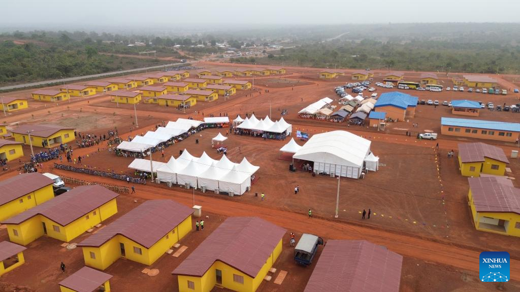 An aerial drone photo taken on Dec. 16, 2023 shows the resettlement village in the north of the northern town of Ferkessedougou in Cote d'Ivoire. (Ivorian Branch of China National Complete Plant Import and Export Group Corporation Limited/Handout via Xinhua)