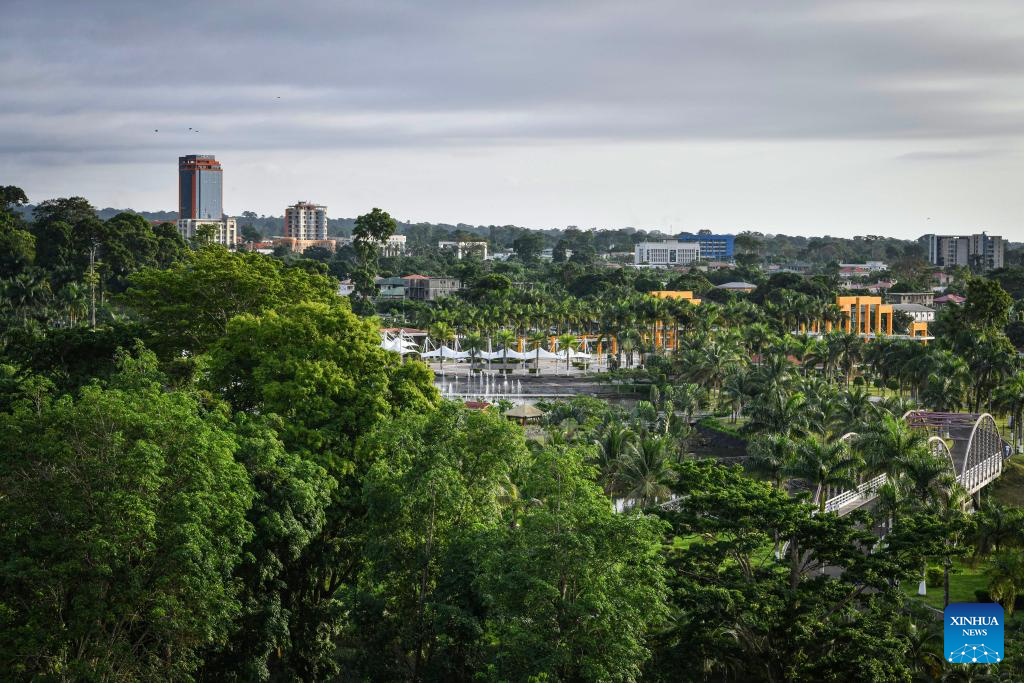 This photo taken on May 18, 2024 shows a view of Malabo National Park in Malabo, Equatorial Guinea. Malabo is situated in the northern part of Bioko Island. The city serves as the political, commercial, financial, and cultural hub of Equatorial Guinea. It is also a major aviation hub and an important seaport of the country. (Xinhua/Han Xu)